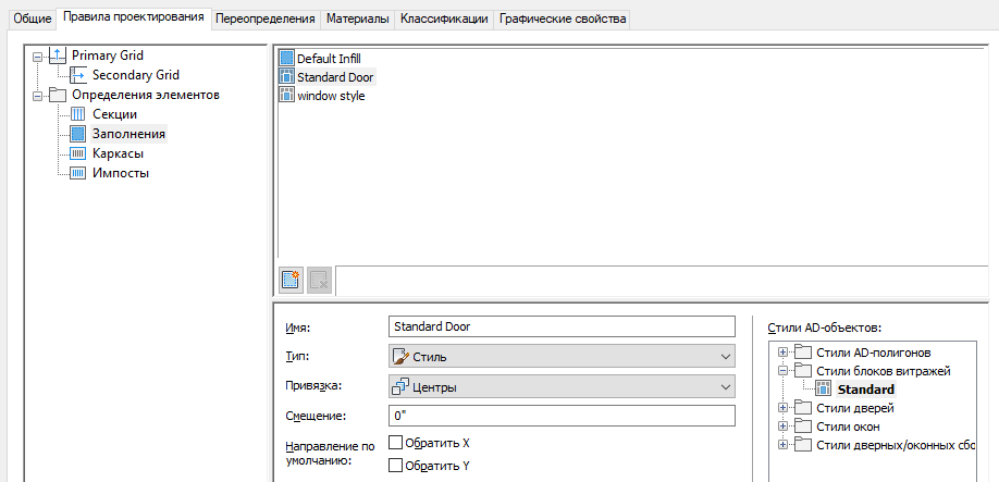 Данная процедура предназначена для того, чтобы изменять элементы, уже имеющиеся в стиле витража. Витраж состоит из таких элементов, как деление, заполнение, каркас и импост; все они определяются в правилах проектирования стиля витража.