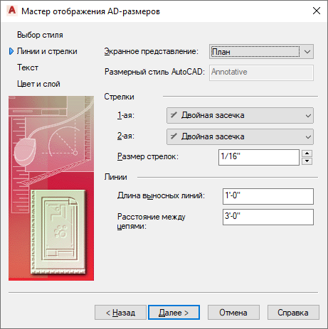 Изменение свойств стиля с помощью мастера стилей AD-размеров