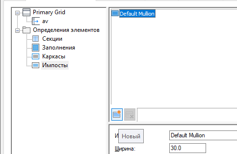 5. В левой панели окна в опции "Определение элементов" выберите "Импосты".