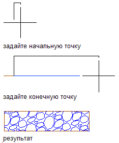 Эта процедура используется для вставки прямоугольных компонентов деталей заданной глубины со штриховкой, например, оснований перекрытий. В этом примере свойству "Вид" в инструменте для вставки основания перекрытия присвоено значение "В разрезе"; это единственный вид, доступным для этого типа компонента.