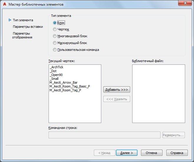 - При наличии 2D и 3D блоков AutoCAD можно преобразовать их непосредственно в компоненты AD-библиотеки, используя Мастер библиотечных элементов и выбрав "Блок" в качестве типа элемента.