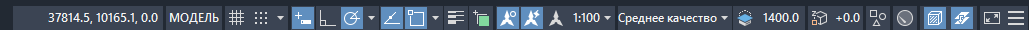 В строке состояния отображается расположение курсора, инструменты чертежа, а также инструменты, которые влияют на среду чертежа.