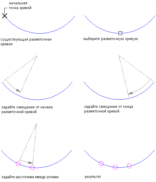 Размещение узлов на разметочной кривой через равные расстояния