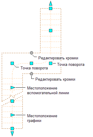 Ручки "Кромка", "Вершина" и "Прекратить редактирование сегментов" для площадки многомаршевой лестницы