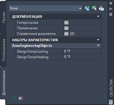 Указанные наборы свойств будут добавлены для выбранной зоны; они будут отображаться на вкладке "Расширенные данные".