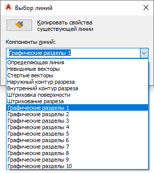 Можно также нажать (Копировать свойства существующих линий) и выбрать в фасаде линии, компонент отображения которых требуется скопировать.