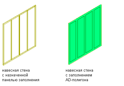В инструментарий AutoCAD Architecture 2026 объект витража состоит из одной или нескольких сеток. Каждая сетка содержит ячейки, которые могут быть заполнены панелями или другим объектом, например окном или дверью. AD-полигоны идеально подходят для создания панельных заполнений витражей.