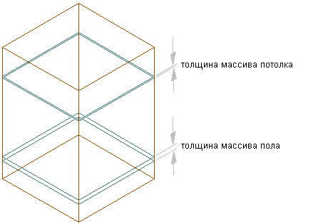 Выдавленное 3D-пространство подобно 2D-пространству, но у него есть заданная пользователем высота выдавливания. Операция выдавливания подходит для 3D пространств с правильными очертаниями, например для комнат постоянной высоты в здании. Выдавленные пространства могут иметь компоненты массивов пола и потолка, а также надпотолочное пространство и пространство ниже уровня пола. Надпотолочное пространство часто используется для размещения воздуховодов, кабелей и электрических устройств в комнате.