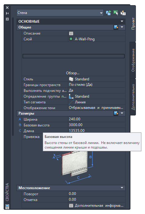Подсказки на палитре свойств отображаются тогда, когда курсор остановлен на каком-либо свойстве в списке.