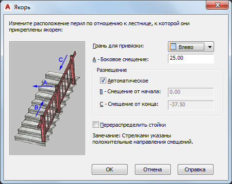 - Значение, равное нулю, ставит начальную и конечную основные стойки точно на концах лестницы.
