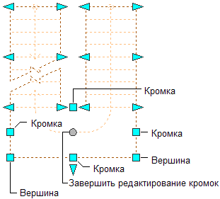 Ручки "Вершина", "Кромка" и "Прекратить редактирование сегментов" для площадки П-образной лестницы