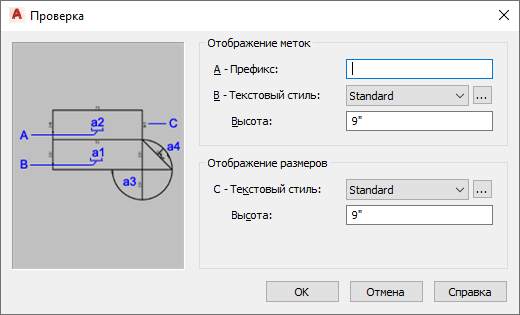 Данная процедура позволяет настроить параметры текста для марок и размеров кромки, отображаемых для подчиненных элементов после разбивки пространства.