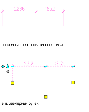 | проставить размеры точкам привязки на объектах (создать ассоциативный размер), | убедиться, что привязка включена. Ввести в командную строку p (точки выбора) и выбрать точки на объектах, к которым будет выполняться привязка. |