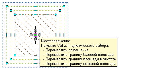 | переместить общую границу пространства, | щелкните ручку перемещения и, удерживая ее, четырежды нажмите клавишу CTRL, чтобы перейти к режиму перемещения общего контура. Затем переместите общую границу в нужное положение и нажмите кнопку мыши. |