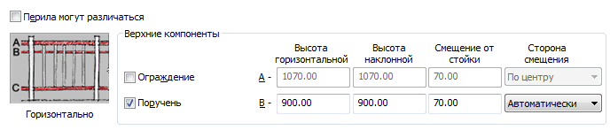 | назначить высоту для ограждения или поручня, | введите значение в поле "Высота по горизонтали". |