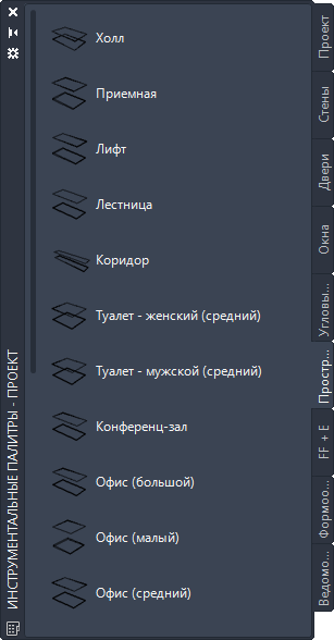 Палитра инструментов в виде списка