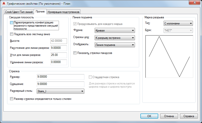 Для лестниц, созданных в версиях Autodesk Architectural Desktop, предшествующих версии 2004 года, параметр "Переопределить настройки отображения секущей плоскости" установлен по умолчанию. В текущей версии этот параметр по умолчанию выключен, и экранные свойства компонентов лестницы устанавливаются автоматически на основе конфигураций экранного представления для каждого уровня.