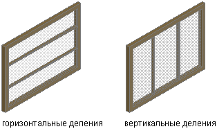 Каждой сетке оконной/дверной сборке присвоена одна секция, определяющая порядок разделения сетки - горизонтальный или вертикальный. Секция также определяет количество ячеек, их размер и расположение.