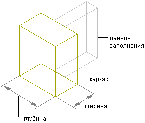У всех сеток оконных/дверных сборок, включая первичную сетку, могут быть определения каркасов. Каркас оконной/дверной сборки определяется внешними кромками сетки. Общий размер каркаса определяется длиной и высотой сетки оконной/дверной сборки. Каркас можно определить с помощью задания ширины и глубины, или же выбрав профиль.