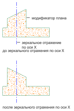 Зеркальное отражение модификатора поверхности на плане по оси X