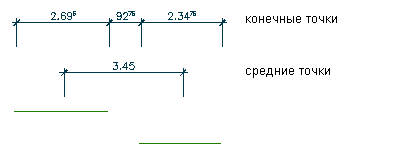 | Средние точки | Измеряют расстояния до средних точек всех сегментов выбранных объектов, лежащих в направлении измерения. Положение средних точек может быть измерено для всех образуемых линиями объектов AutoCAD, перечисленных выше, за исключением окружностей. |