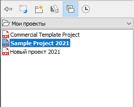 Селектор проектов расположен в левой части Диспетчера проектов и отображает проекты, созданные в инструментарий AutoCAD Architecture 2026.