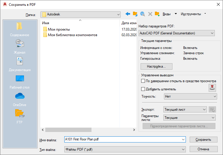 В диалоговом окне "Сохранить как" укажите информацию для файла PDF.