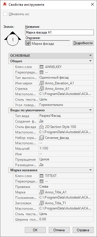 | Местоположение стиля разреза/фасада | Общий | Определение файла чертежа или шаблона, в котором постоянно содержатся доступные стили 2D разрезов/фасадов. |
