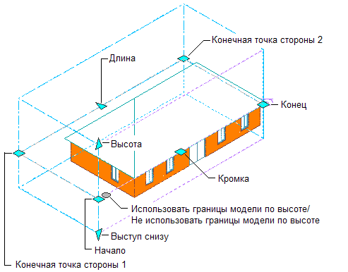 Прим.: Если используются размеры модели для режима высоты, то высота разреза определяется высотой объектов в разрезе и не годится для динамических изменений.