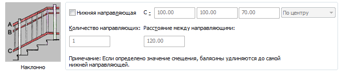 | указать высоту самой нижней направляющей, находящейся в лестничном марше, | введите значение в поле "Наклонно". |
