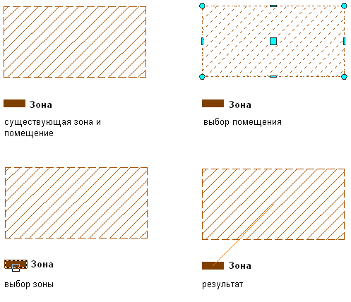 Данная процедура позволяет прикреплять пространства и зоны к выбранной зоне.