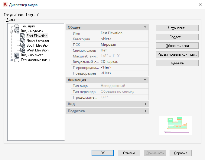 В Диспетчере видов созданный вид пространства модели содержится в списке в папке "Виды".