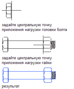 Эта процедура используется для вставки компонентов болта, причем требуется задать расстояние между головкой болта и гайкой. В этом примере свойству "Вид" инструмента вставки болта присвоено значение "Сбоку". Если свойство установлено на значение "Головка" или "Гайка", то подсказка на выполнение двух первых шагов не выводится.