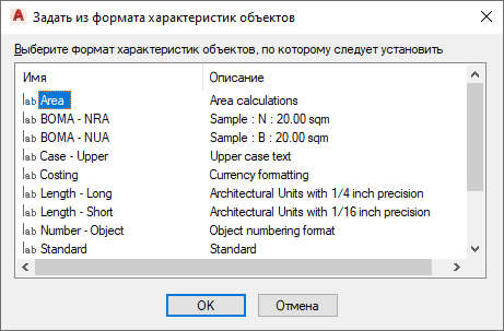 Параметры выбранного формата данных копируются в коды формата в поле.