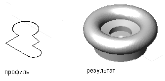Эта процедура используется для создания формообразующего элемента путем задания профиля как основы для формы этого элемента и последующего вращения этого профиля относительно его оси. Осью вращения профиля является ось X, как показано на чертеже. Точка вставки формообразующего элемента вращения находится в центре его нижней грани.