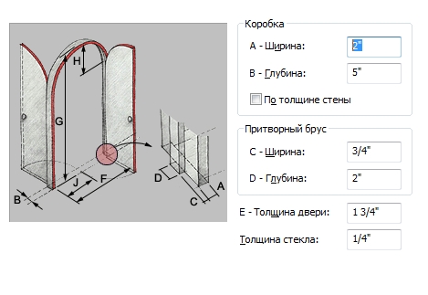 | изменить размеры притворного бруса, | в группе "Притворный брус" введите значения параметров "Ширина" и "Глубина". |