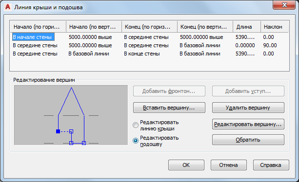 Данная процедура предназначена для добавления уступа к линии крыши или подошве витража.