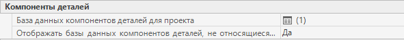 4. Для свойства "База данных компонентов деталей для проекта" нажмите . (Указано количество баз данных, связанных с текущим проектом.)