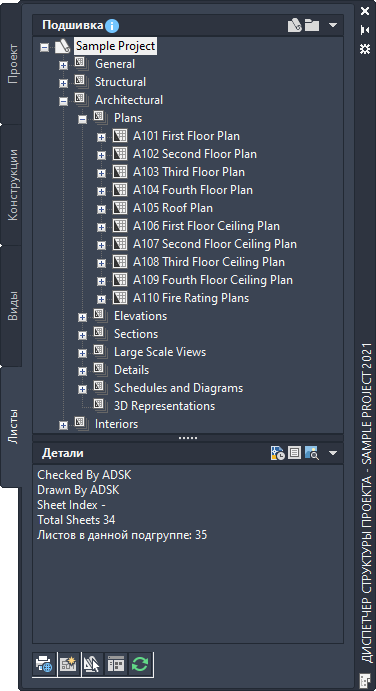 Подшивка проекта в Диспетчере структуры проекта Инструментарий AutoCAD Architecture 2026
