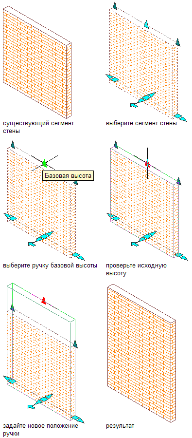 Выбрав ручку, можно также ввести точное значение для увеличения или уменьшения базовой высоты стены.