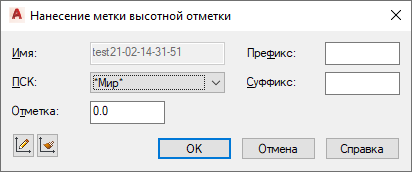 Выводится диалоговое окно "Нанесение метки высотной отметки".