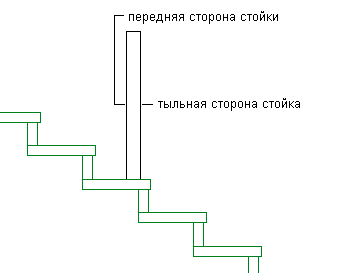 Задайте ориентацию стоек относительно направлений вверх и вниз по пролету лестницы на виде в фасаде, как показано на следующем рисунке: