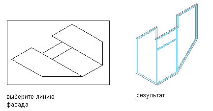 Если линии нарисованы в плоскости XY (на виде "в плане"), и используется стандартная базовая линия, то результирующая навесная стена отображается на экране в виде проекции в направление Z.