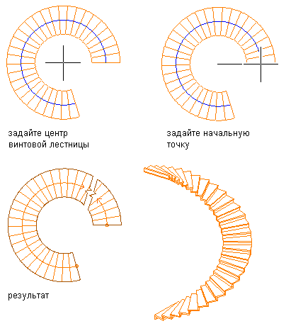 Эта процедура используется для создания лестницы с круглым сечением или винтовой лестницы. Винтовая лестница снизу доверху обращается вокруг общей центральной точки.