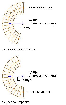 Определение для винтовой лестницы направления по горизонтали,