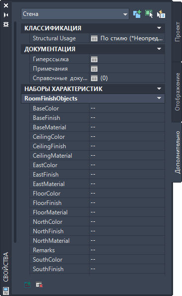 Вкладка "Расширенные данные" палитры свойств содержит следующие свойства объекта.