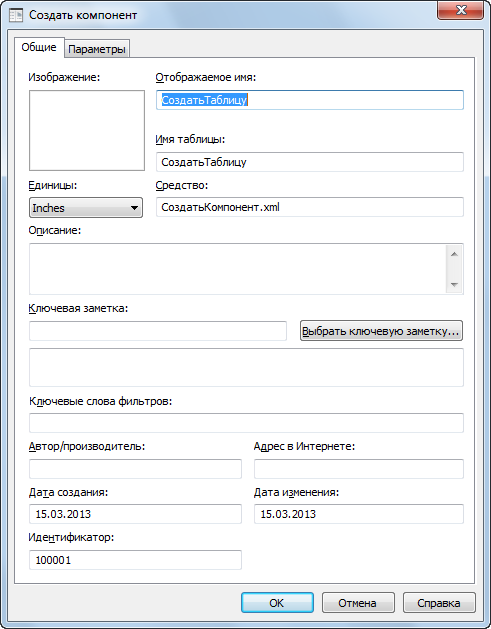 | Описание | Введите описание, которое требуется выводить для этого компонента на вкладке "Подробности" в Диспетчере компонентов деталей. |