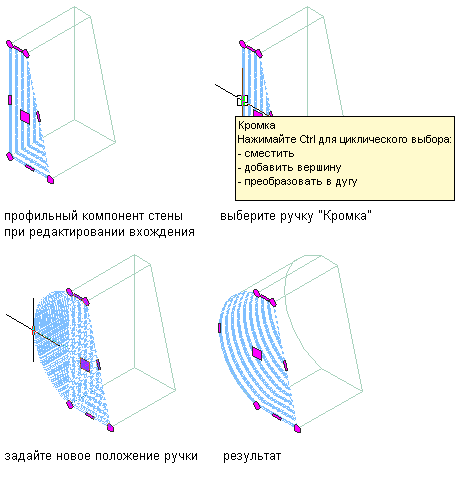 Преобразование кромки контекстного редактирования профильного компонента стены в дугу