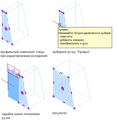 Добавление вершины к кромке контекстного редактирования профильного компонента стены