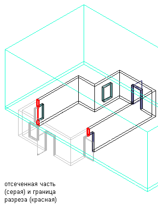 Компоненты "Отсеченная часть" и "Отсеченная граница" отображаются только в псевдоразрезах. Псевдоразрез является особым видом разреза 3D модели здания. Объекты здания не конвертируются в объект разреза, а остаются в разрезе как индивидуальные объекты. Они сохраняют свои свойства и экранные компоненты, и их можно редактировать в разрезе. Отображение видов снаружи на псевдоразрез меняется на "Отсеченную часть". Это отображение может быть полупрозрачным или скрытым.